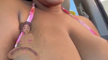 big boobs in car
